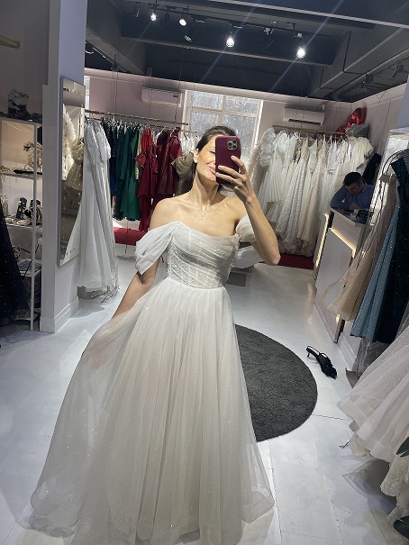 Изысканное свадебное платье с акцентным верхом, искусно расшитым блестящими элементами. Лаконичный низ идеально уравновешивает богато декорированный лиф, создавая гармоничный и торжественный образ. Для вашего удобства доступны два варианта: покупка или экономичный прокат. Выбирайте идеальный формат и блистайте в самый важный день!