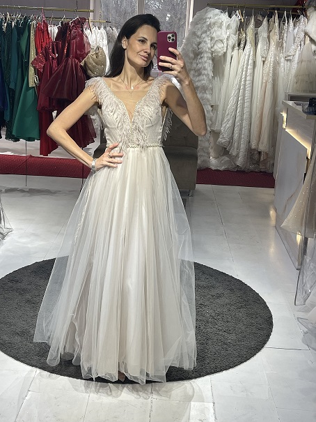 Воплощение легкости и гламура — свадебное платье с нежными перьями. Модель расклешенного А-силуэта длиной в пол создает романтичный и воздушный образ. Декоративные перья добавляют оригинальность и делают наряд по-настоящему особенным. Идеальный выбор для невесты, которая хочет выглядеть стильно и запоминающееся. Оформите прокат и примерьте платье своей мечты!