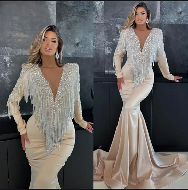 Изысканное вечернее облегающее платье для особого случая доступно для аренды в Краснодаре. Модель с роскошным расшитым верхом и струящейся блестящей бахромой на груди создает эффектный сияющий образ. Идеально для свадьбы, выпускного, корпоратива или светского мероприятия.