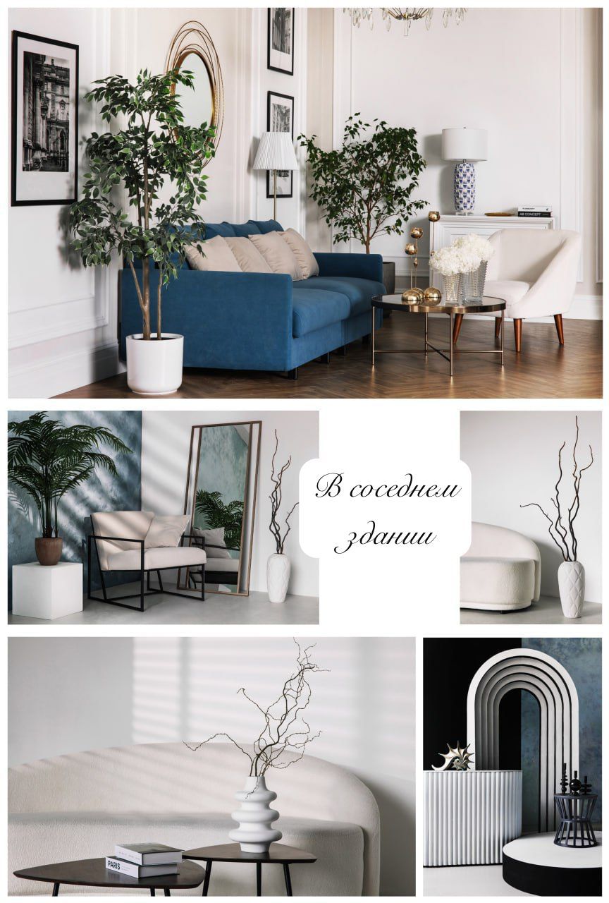 Интерьерная фотостудия с голубым диваном, растениями, аркой, белым диваном, вазами и минималистичным дизайном 2026 Краснодар