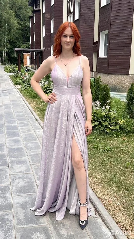 Глиттерное платье в пол с разрезом и декольте – аренда в Краснодаре | Окей Дресс в наличии